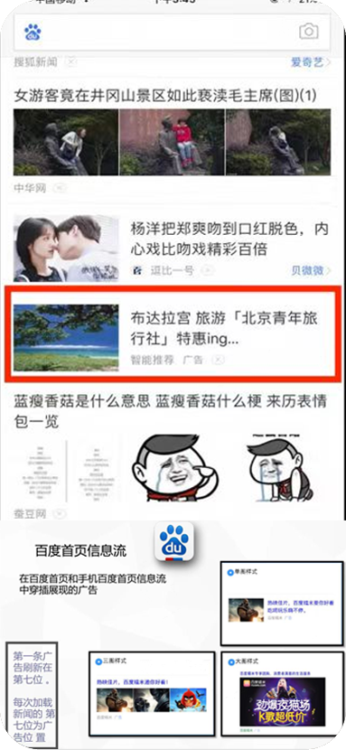 在百度資訊中穿插的原生廣告,用戶潛移默代接受信息
